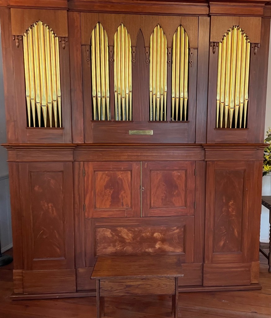 The Church Organ is the oldest pipe organ in South Carolina, originally built in 1820 by James Jackson of New York. The organ was gifted to Bethesda Presbyterian Church in Camden, SC, shortly after that church opened in 1820. The organ is built of solid mahogany wood and was originally pumped by hand. After Bethesda purchased a new organ in 1907, LHPC purchased the Jackson piece for $200 ($6,804.23 in 2025 dollars) and moved it to their sanctuary where it resides today. The organ was fully restored by J. Allan Farmer, Inc., organ builders in Winston-Salem, NC, and rededicated on March 17, 1996. The organ is one of only two known surviving James Jackson organs. The other was built in 1834 and can be found at St. John’s Episcopal Church in Ellicottville, NY.